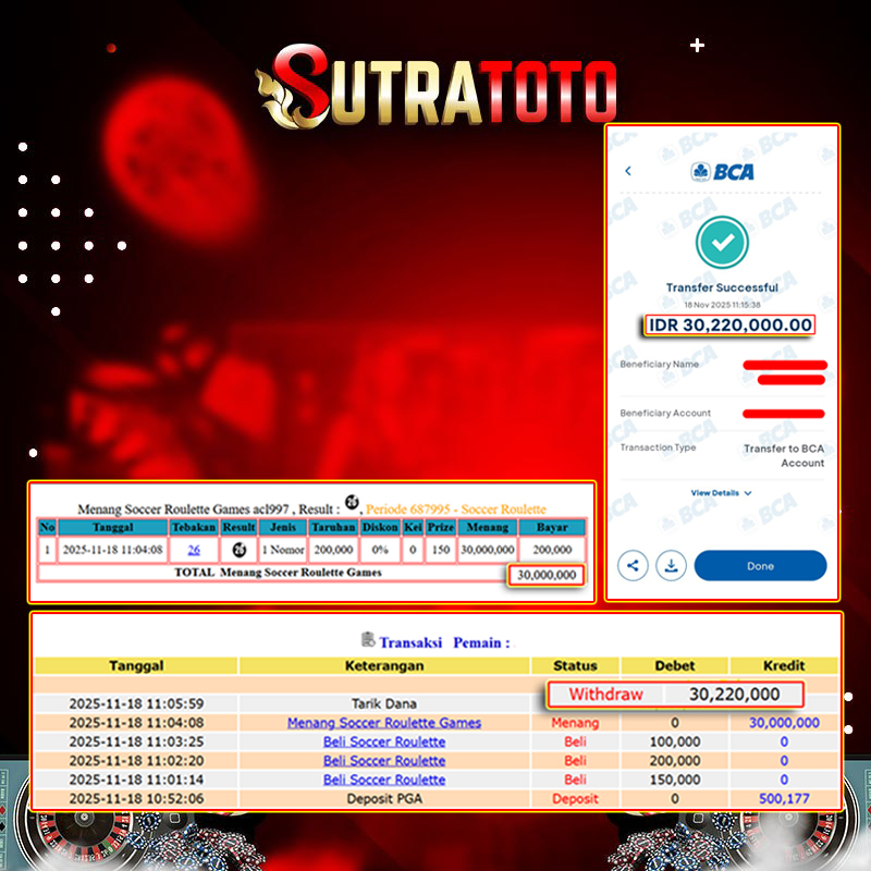 SUTRATOTO JACKPOT SOCCER ROULETTE GAMES Rp. 30.000.000,- LUNAS