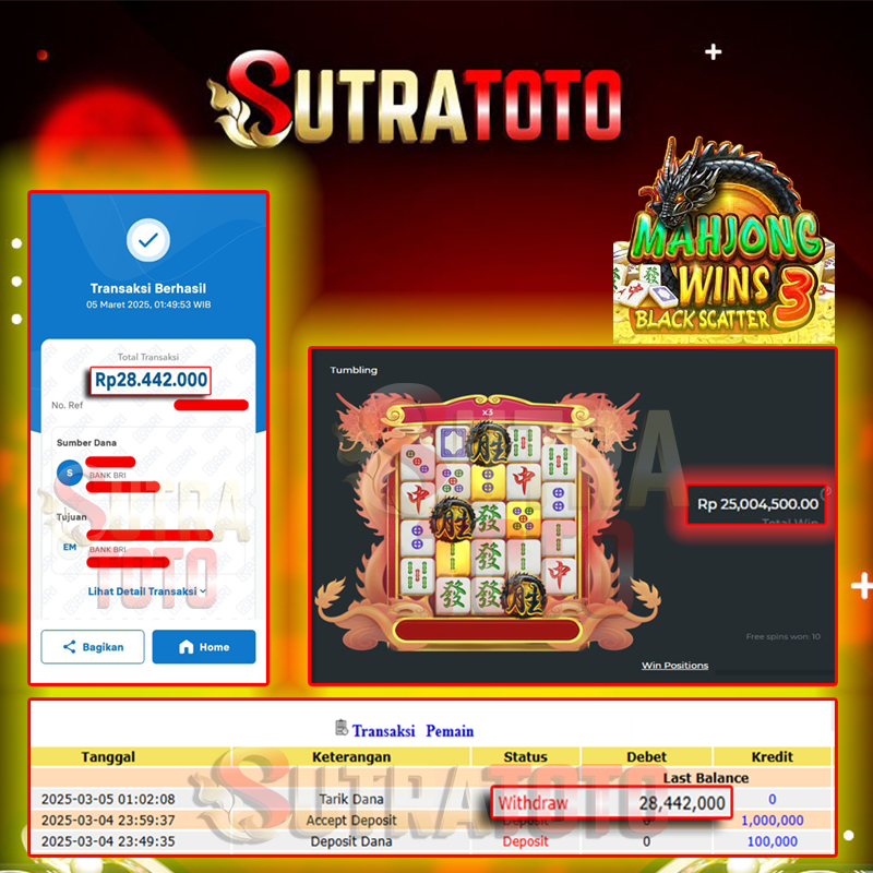 Selamat kepada User id : BE** Telah berhasil mendapatkan kemenangan besar pada permainan SOCCER ROULETTE GAMES kemenangan Sebesar Rp. 72.400.000, Setelah mengisi formulir withdraw dengan kurung waktu hanya 5 - 10 menit pihak SUTRATOTO sudah melakukan transfer kepada pemilik Userid dan dana sudah dapat di cairkan oleh pemenang. Bukti pembayaran yang kami berikan merupakan bukti pembayaran yang SAH / VALID yang langung di dapatkan melaui tanda transfer transaksi dari Bank yang di tuju.