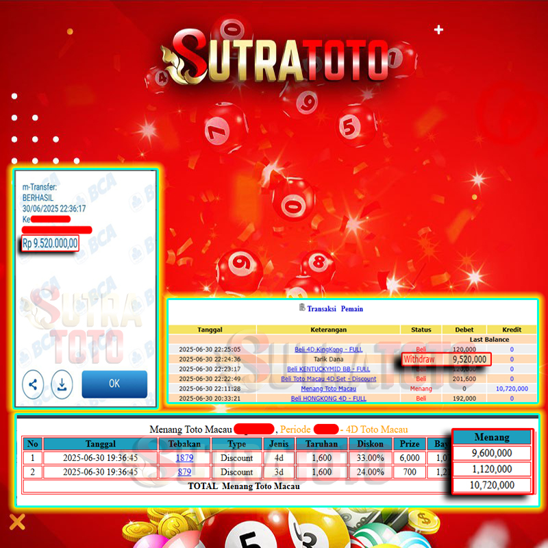 SUTRATOTO JACKPOT TOTO MACAU Rp. 10.720.000,- LUNAS