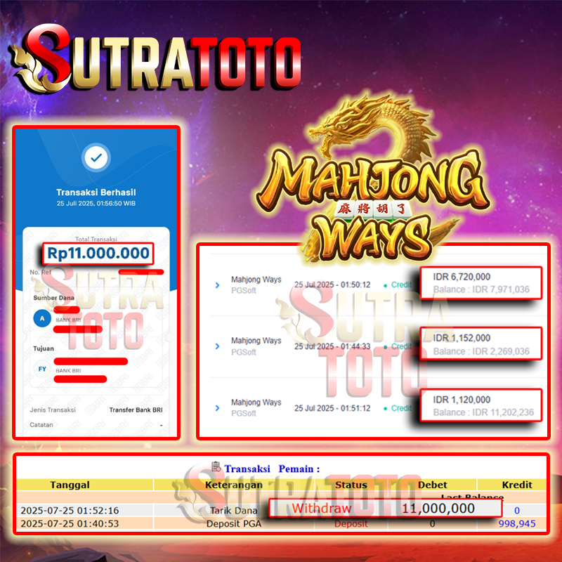 SUTRATOTO JACKPOT MAHJONG WAYS Rp. 11.000.000,- LUNAS